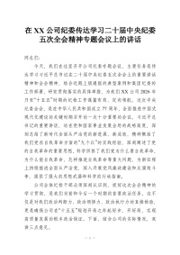 在XX公司纪委传达学习二十届中央纪委五次***精神专题会议上的讲话