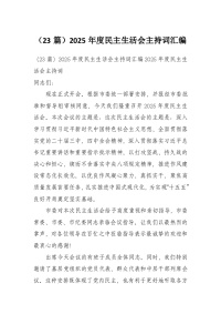 (19篇)2025年度民主生活会会前学习研讨会主持讲话汇编