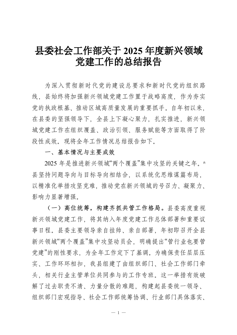 县委社会工作部关于2025年度新兴领域党建工作的总结报告