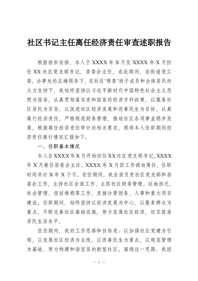 首页讲课讲稿社区书记主任离任经济责任审查述职报告