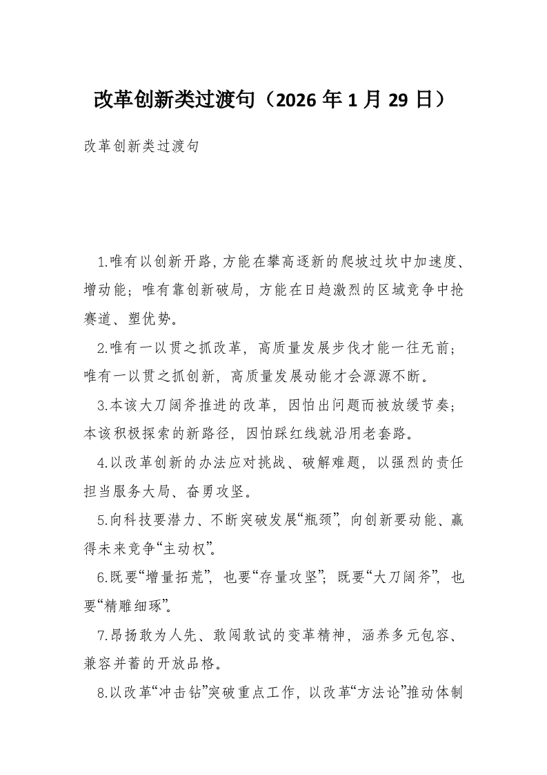 首页每日金句改革创新类过渡句(2026年1月29日)