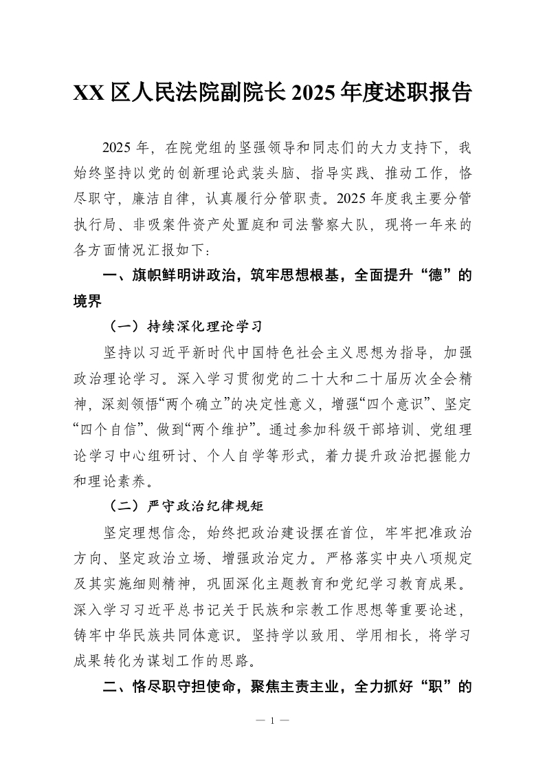 首页工作文档XX区人民法院副院长2025年度述职报告