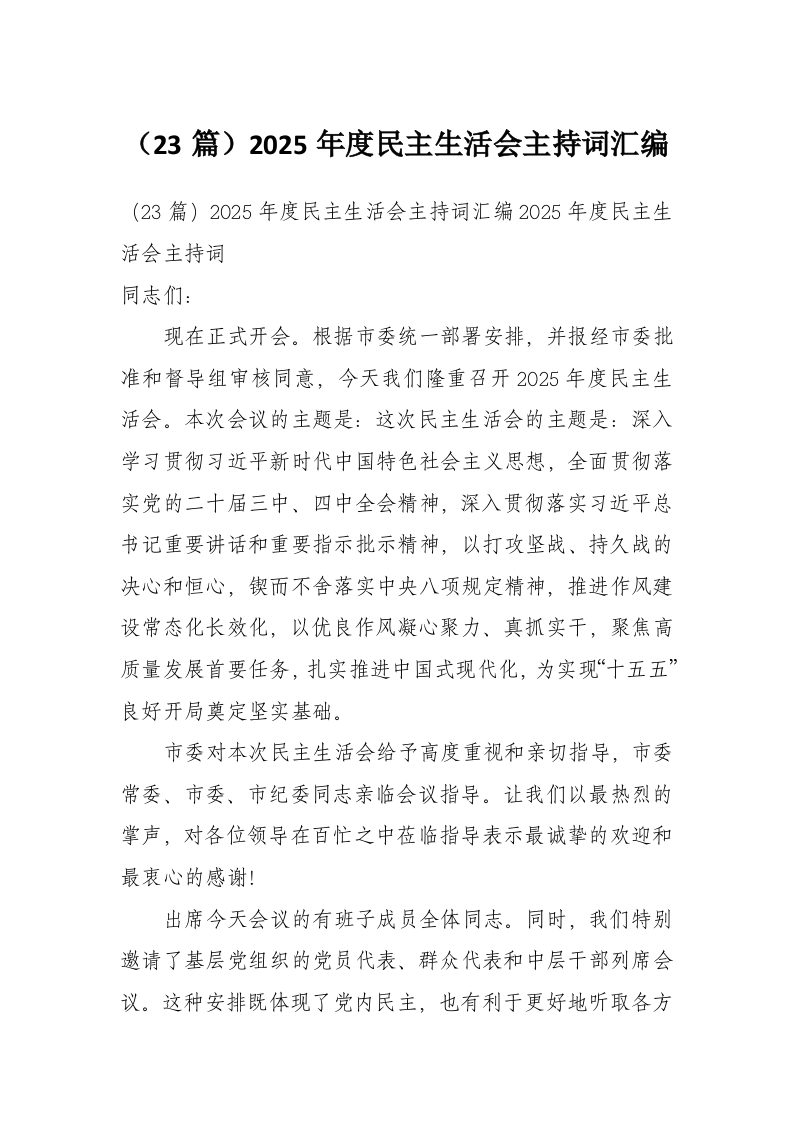 首页学习提升(23篇)2025年度民主生活会主持词汇编