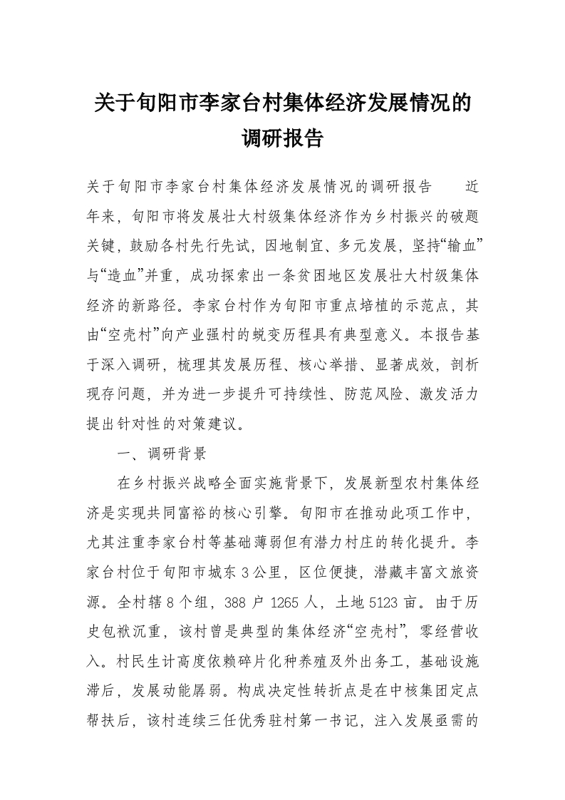 关于旬阳市李家台村集体经济发展情况的调研报告