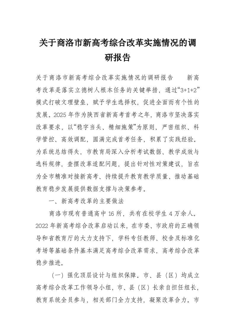 首页工作文档关于商洛市新高考综合改革实施情况的调研报告