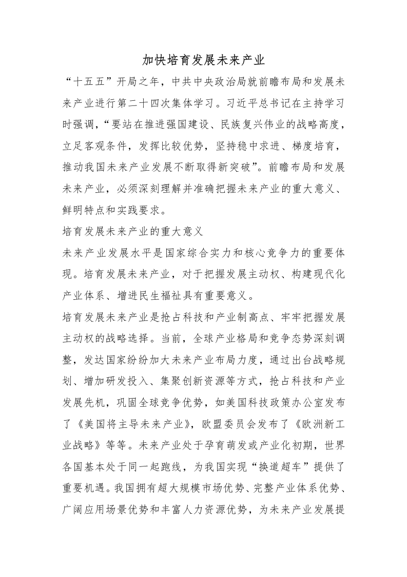 首页公考遴选加快培育发展未来产业