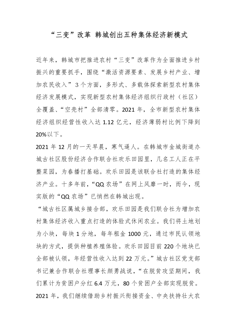 “三变”改革 韩城创出五种集体经济新模式_副本