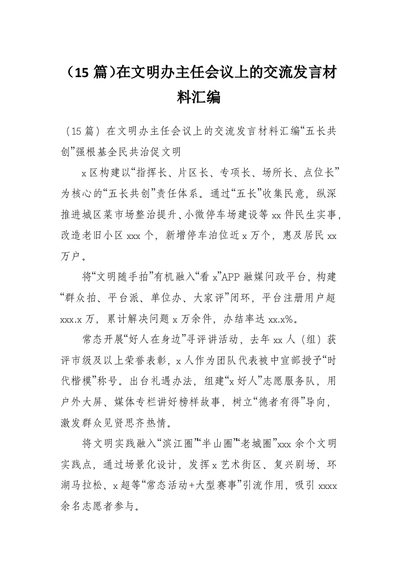 (15篇)在文明办主任会议上的交流发言材料汇编