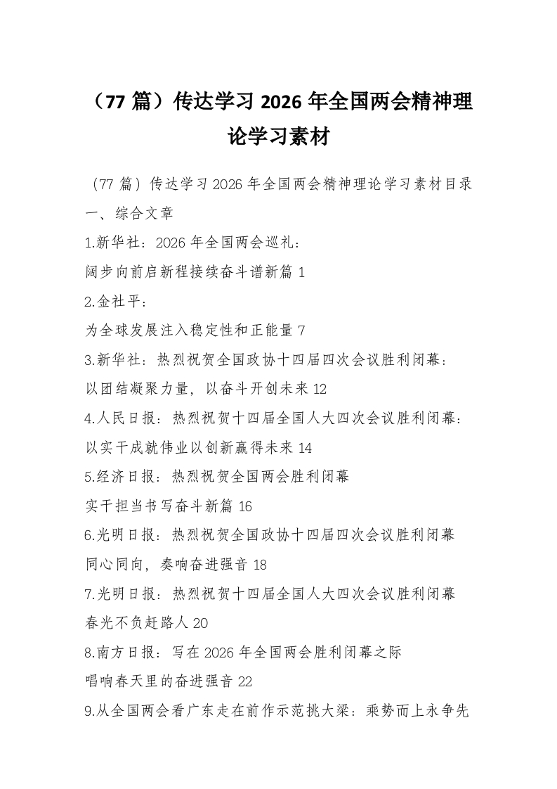 首页材料汇编(77篇)传达学习2026年全国两会精神理论学习素材