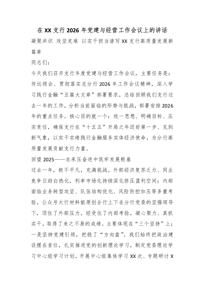 在XX支行2026年党建与经营工作会议上的讲话_副本