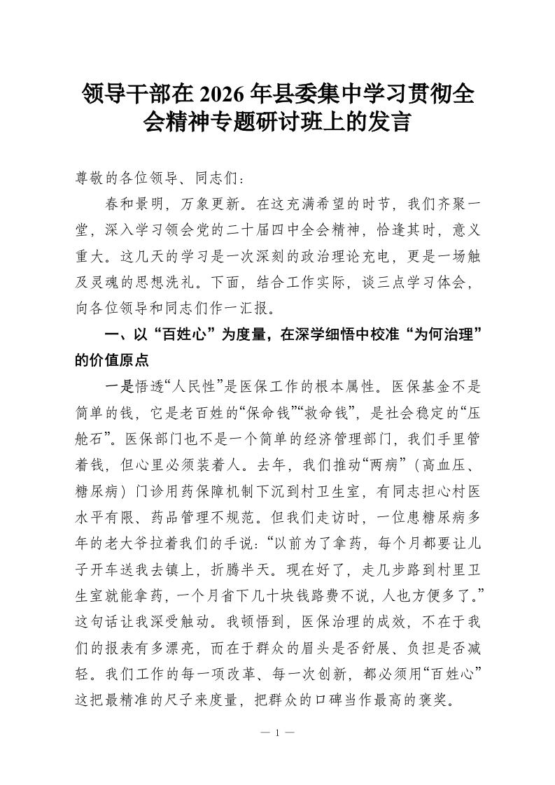 首页讲课讲稿领导干部在2026年县委集中学习贯彻***精神专题研讨班上的发言