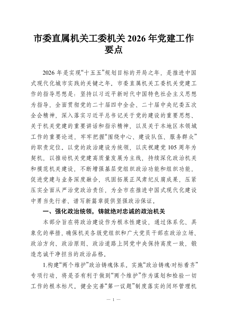 首页工作文档市委直属机关工委机关2026年党建工作要点