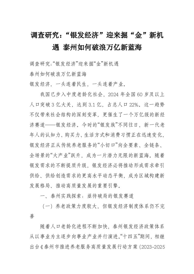 首页人民时评调查研究:“银发经济”迎来掘“金”新机遇 泰州如何破浪万亿新蓝海
