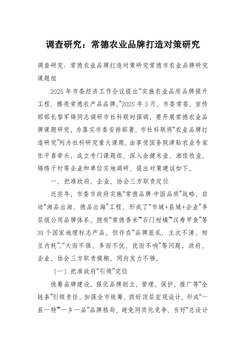 首页公考遴选调查研究:常德农业品牌打造对策研究
