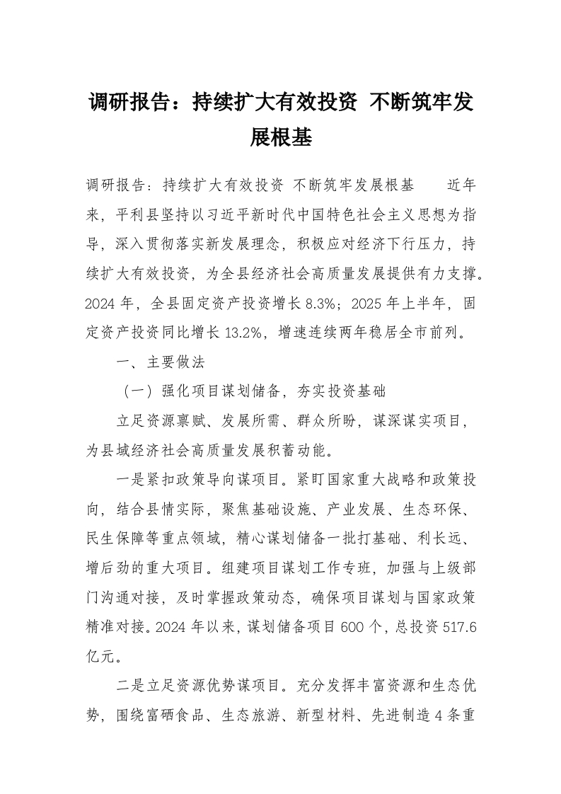 首页工作文档调研报告:持续扩大有效投资 不断筑牢发展根基