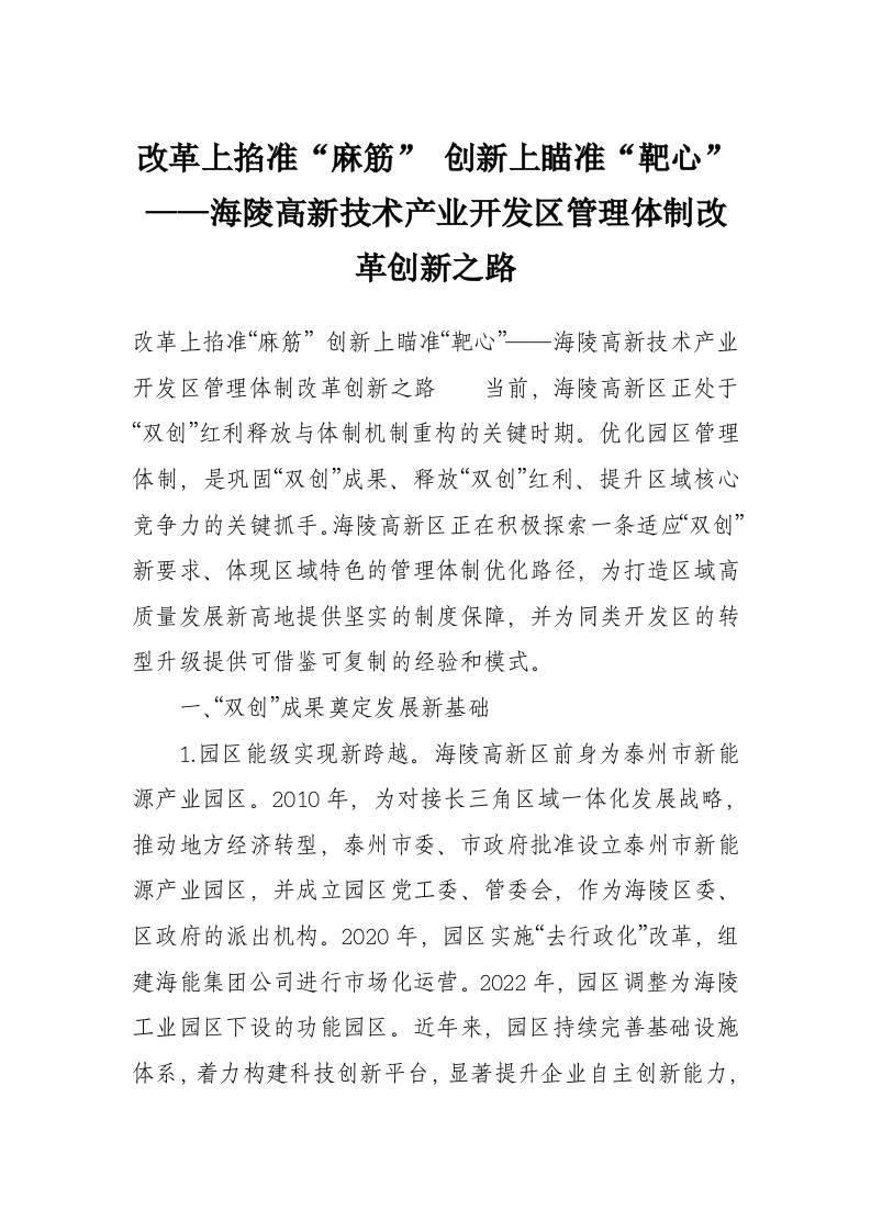 改革上掐准“麻筋” 创新上瞄准“靶心”——海陵高新技术产业开发区管理体制改革创新之路