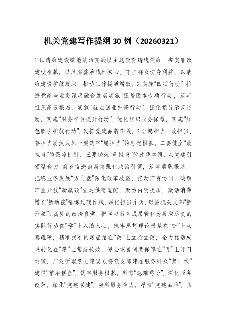 机关党建写作提纲30例(20260321)