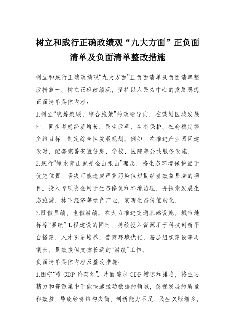 树立和践行正确政绩观“九大方面”正负面清单及负面清单整改措施