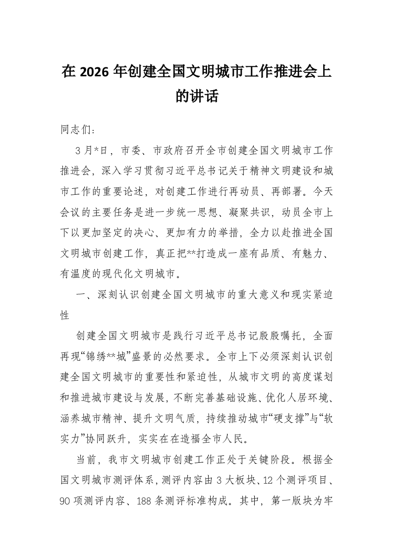首页工作文档在2026年创建全国文明城市工作推进会上的讲话