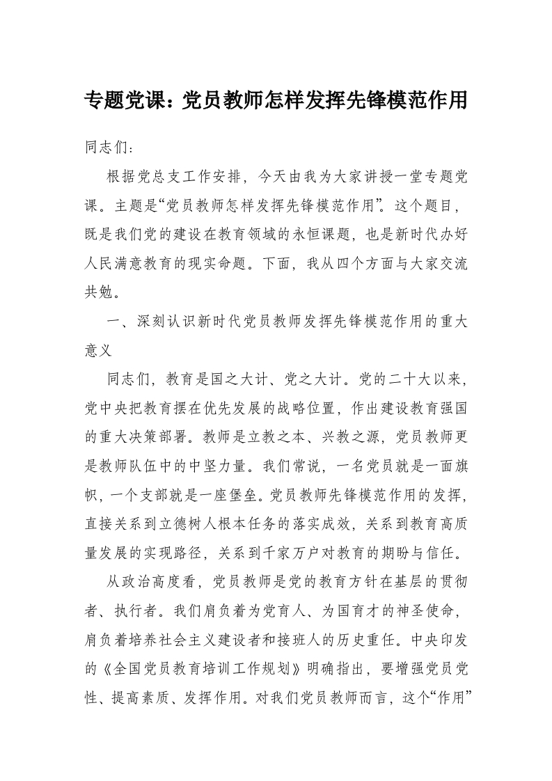 专题党课:党员教师怎样发挥先锋模范作用