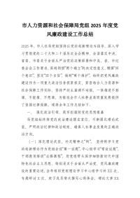 市人力资源和社会保障局党组2025年度党风廉政建设工作总结