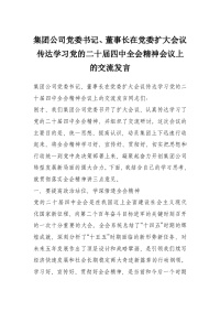 集团公司党委书记、董事长在党委扩大会议传达学习党的二十届四中***精神会议上的交流发言