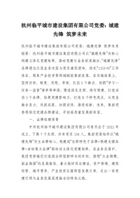 杭州临平城市建设集团有限公司党委:城建先锋 筑梦未来